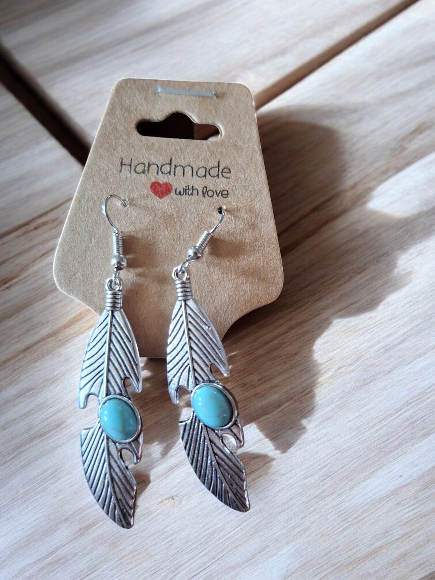 Deze handgemaakte oorringen met verfijnde veervorm en turquoise steentje brengen bohemian vibes naar je dagelijkse look! Ze zijn luchtig, elegant en nét een tikje wild – precies zoals jij.
