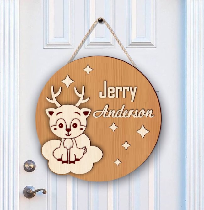 Gepersonaliseerd Houten Naambordje Hert op Wolk