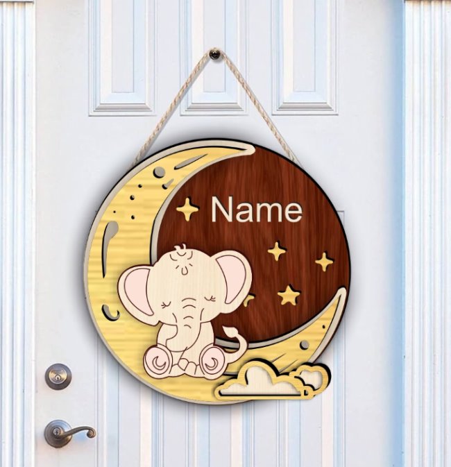 Gepersonaliseerd Houten Naambordje β Olifant op Maan