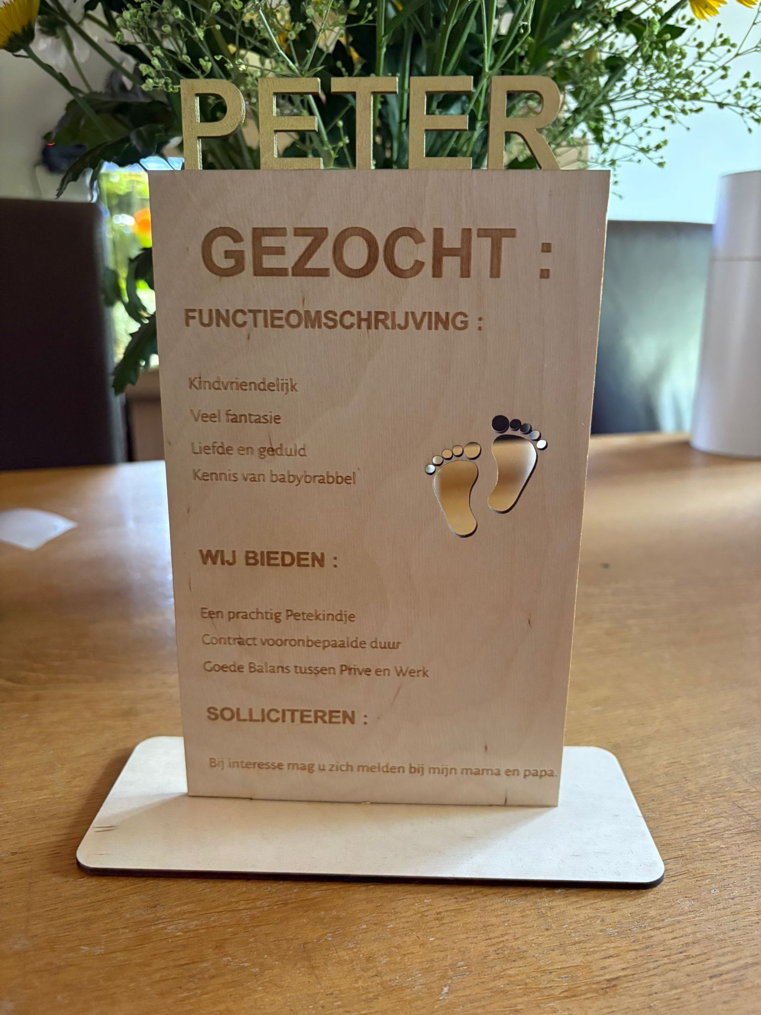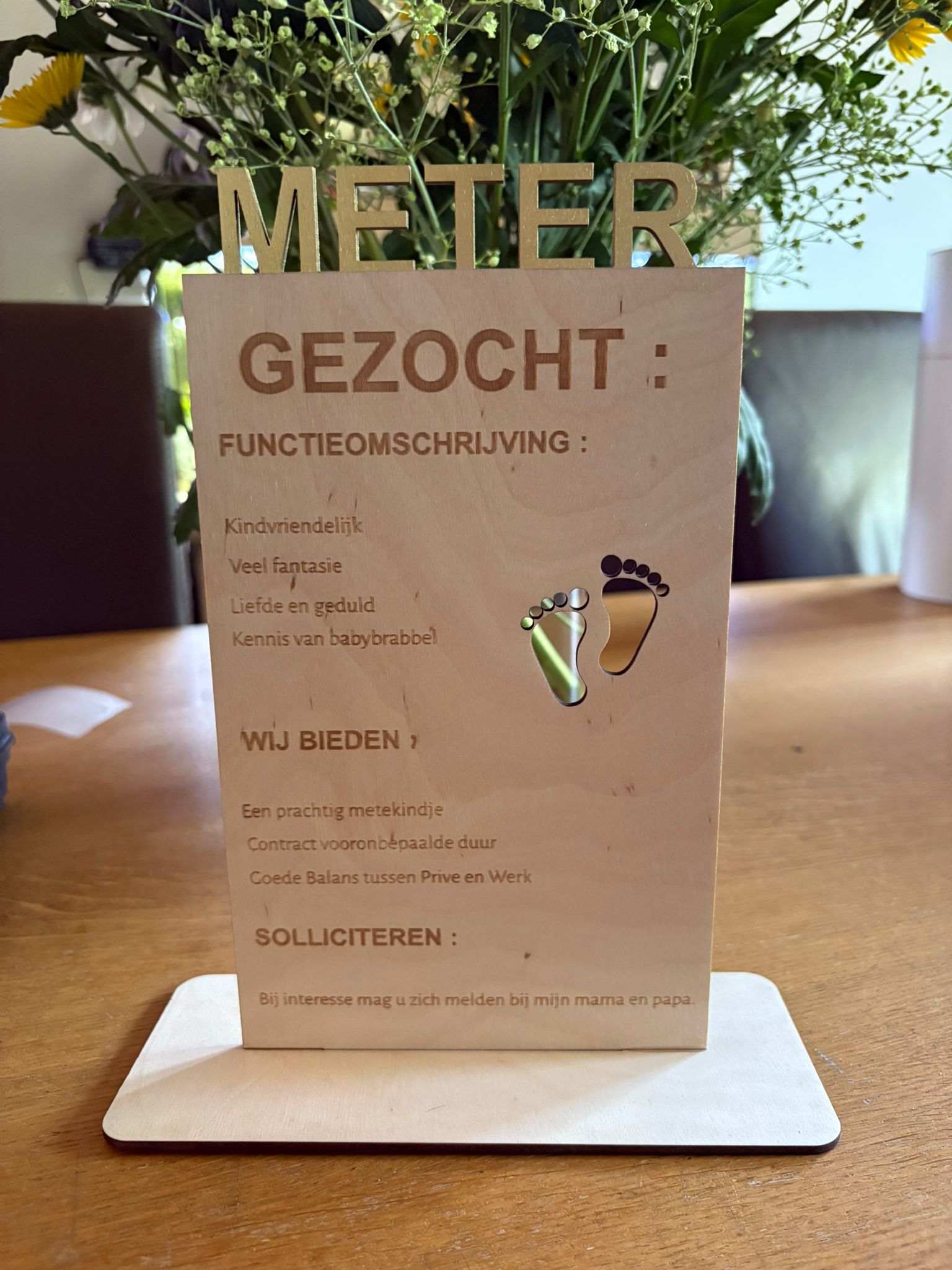 👣 Product 3: “Gezocht: Meter / Peter” houten bord
