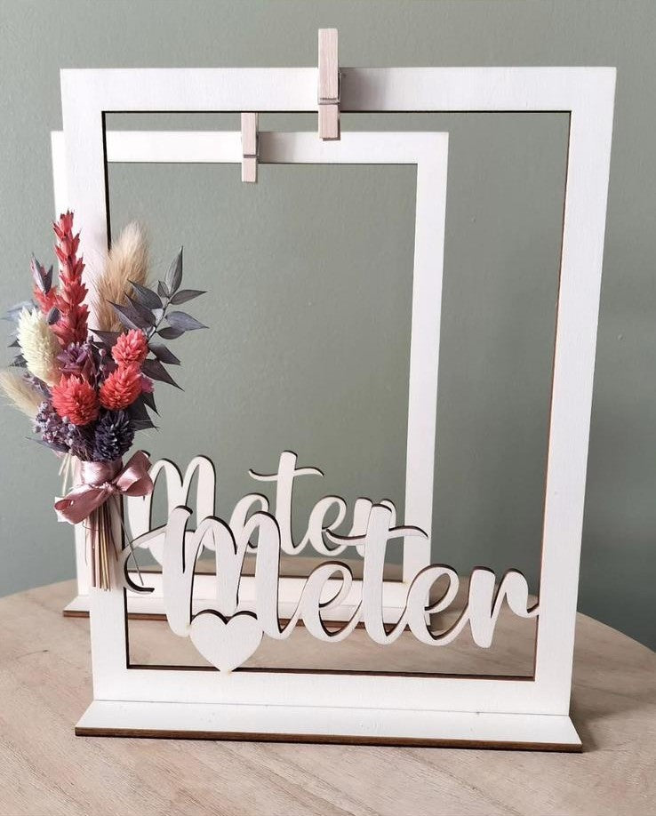 Breng een persoonlijke en warme touch in huis met deze unieke houten fotokader, afgewerkt met een stijlvol droogbloemenboeketje. Verkrijgbaar met verschillende uitsnijdingen zoals Meter, Meter & Peter, of Oma & Opa, ideaal als geschenk voor speciale gelegenheden zoals geboorte, doop, moederdag of grootouderdag.