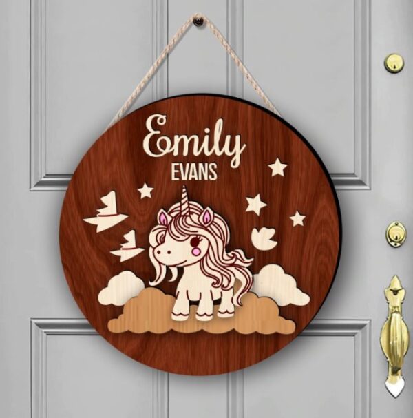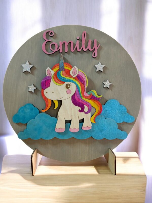 Houten Naambordje voor Kinderkamer of Deur eenhoorn Gepersonaliseerd met Naam