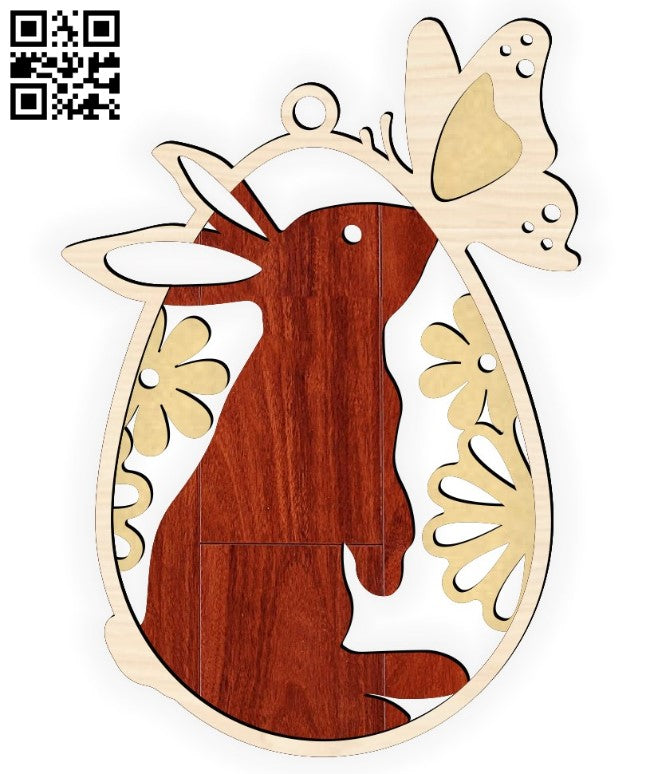 Breng het voorjaar tot leven met dit prachtige 3-delige houten ornament in de vorm van een paasei. Het sierlijke design toont een konijn, bloemen en een vlinder in een speels samenspel van natuurlijke houttinten.