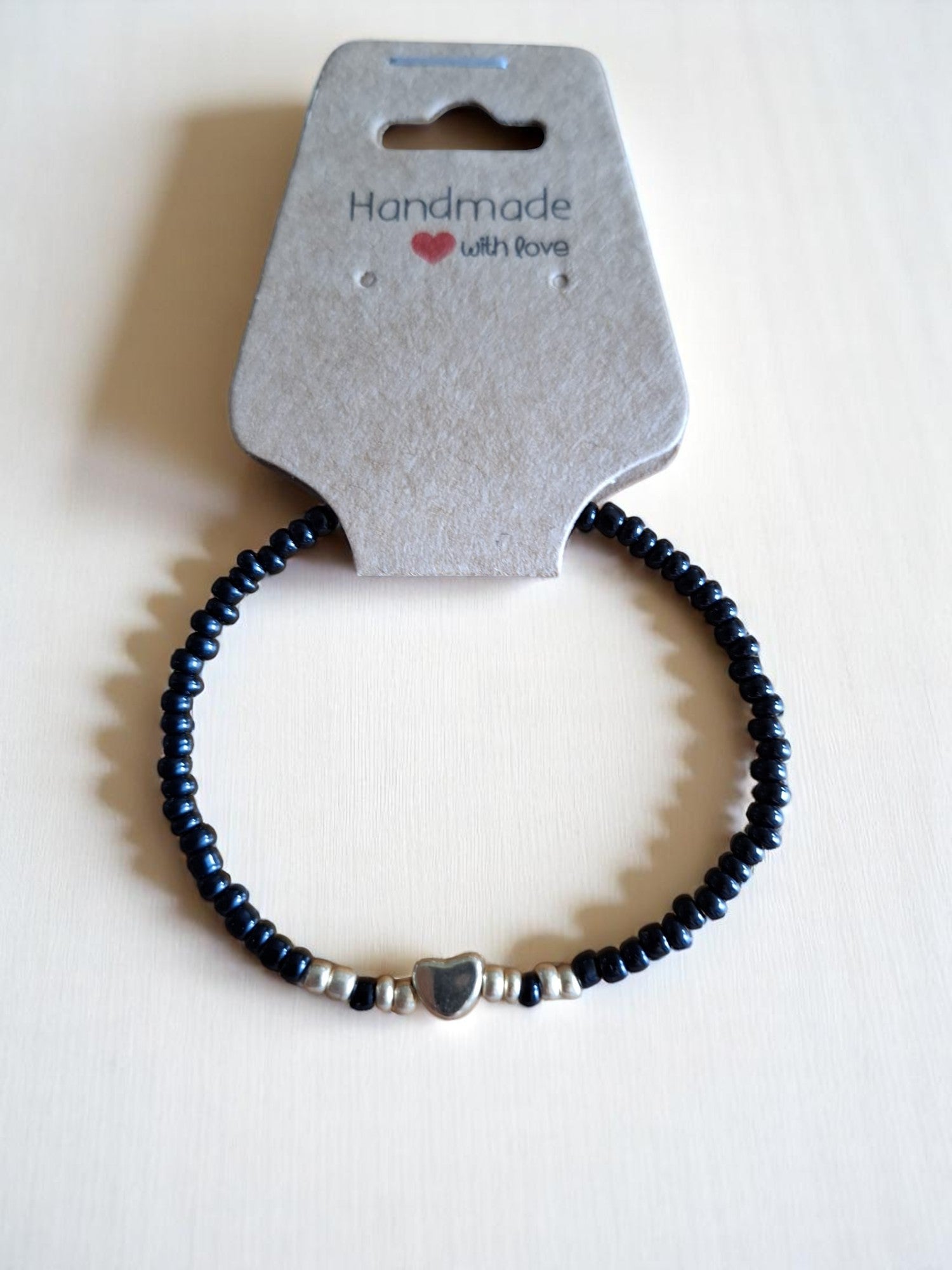 Deze zwarte kinderarmband combineert een stoere look met een schattig zilverkleurig hartje. Ideaal voor kinderen die houden van een eenvoudige maar stijlvolle uitstraling. Gemaakt met liefde en oog voor detail – voor elke gelegenheid.