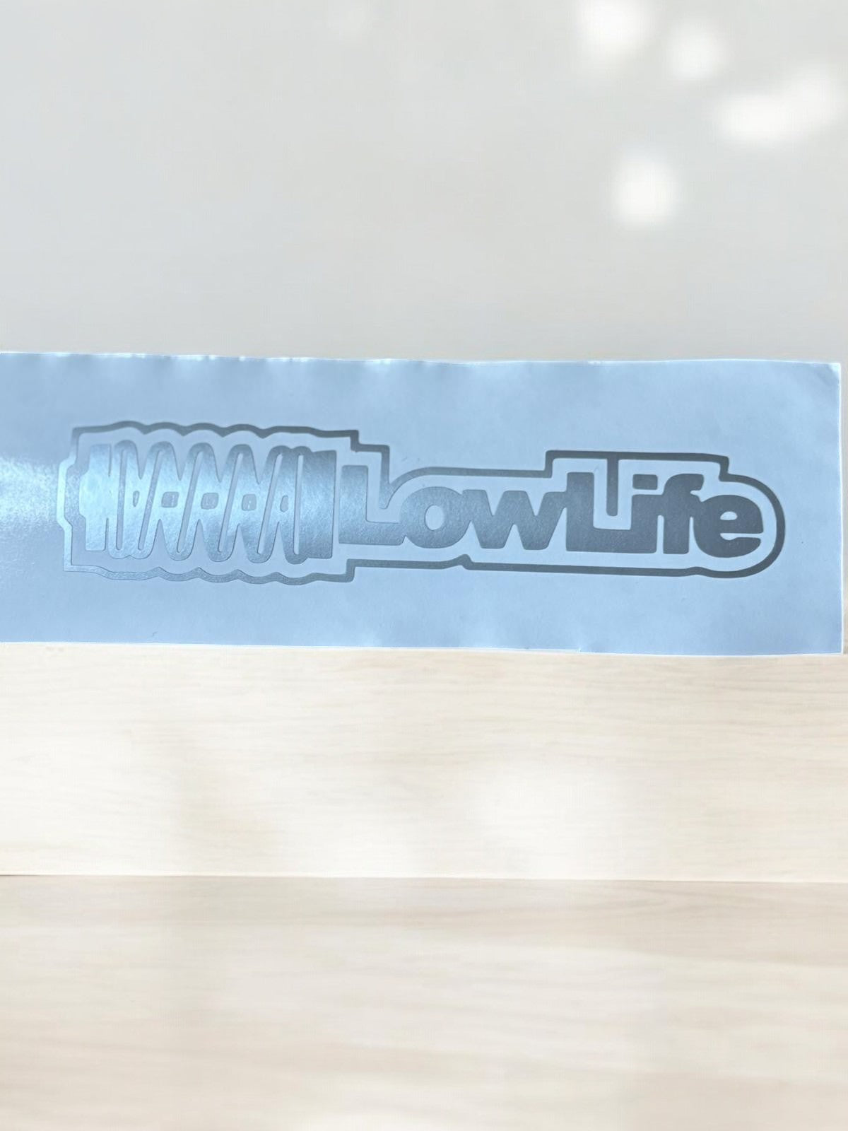 Represent de stance culture met deze stoere “Low Life” vinyl sticker. Een must-have voor iedereen die zijn auto graag laag bij de grond houdt.