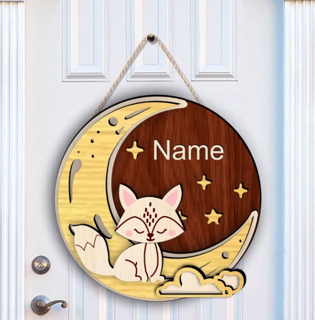 Persoonlijk Houten Naambordje – Vos op Maan